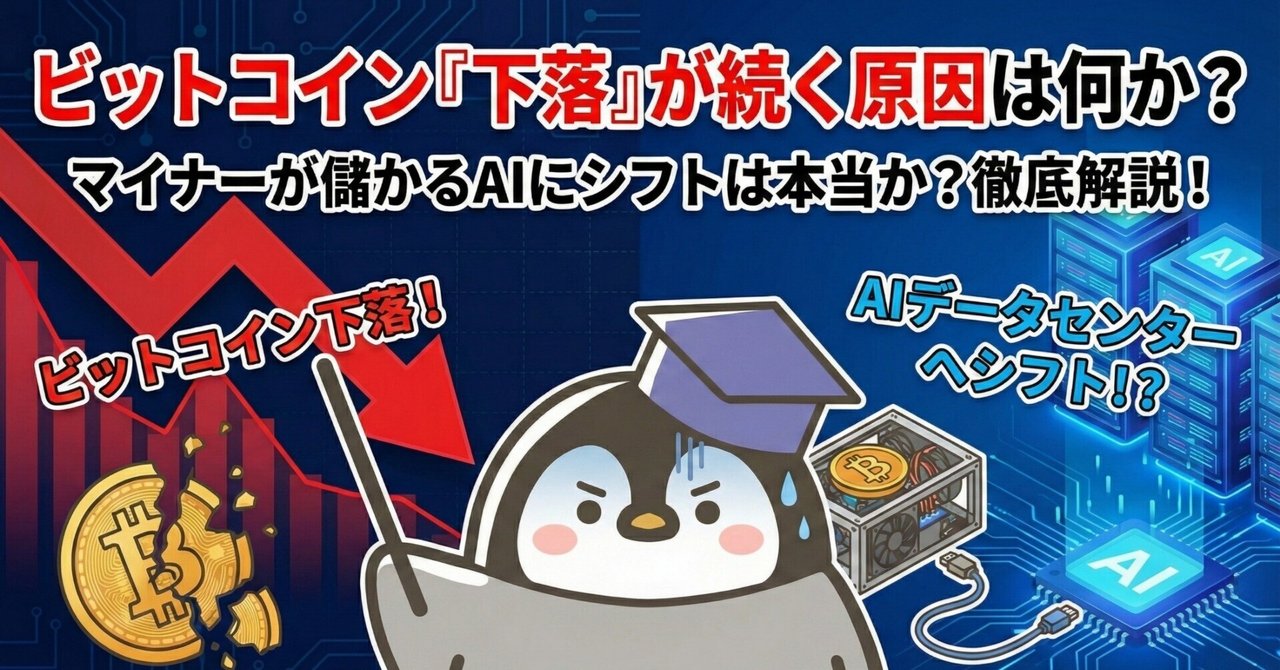 ビットコイン「下落」が続くと言われる原因は何か?マイナーがビットコインより儲かるAIデータセンターにシフトしているのは本当か?